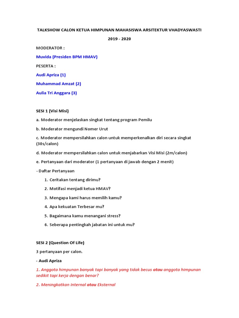 Pertanyaan Untuk Calon Anggota Bem Cara Golden from imgv2-1-f.scribdassets.com Maybe you would like to learn more about one of these? Check spelling or type a new query. Pertanyaan buat calon ketua himpunan. We did not find results for: